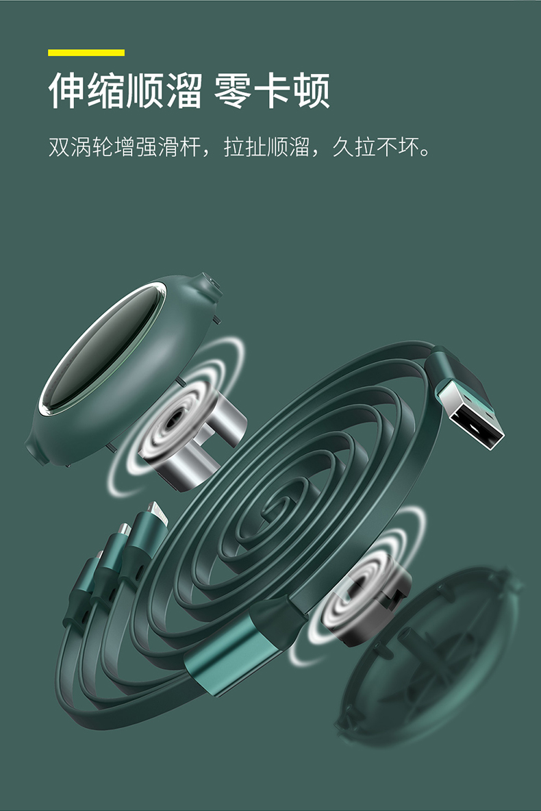 三合一充電線一拖三快充三頭適用于蘋果華為安卓Typec手機車載充電線伸縮手機66W多功能通用線6A